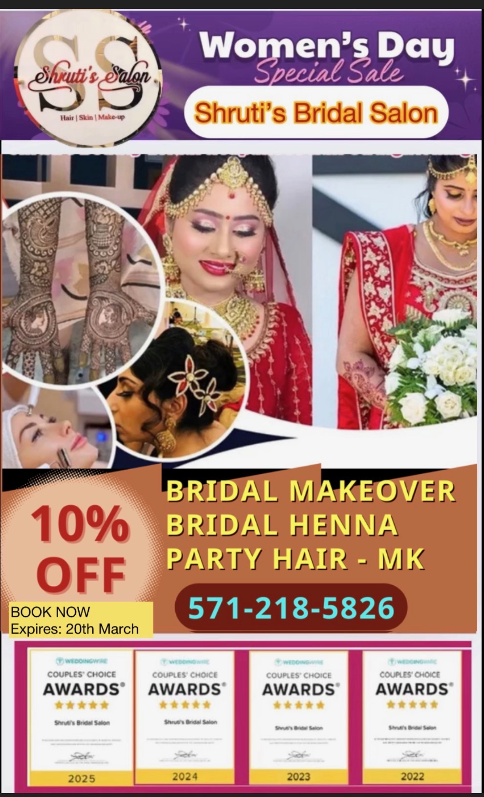 Shruti's Beauty-Bridal Salon is an Indian beauty salon known for our one-stop for all exceptional beauty services in Aldie, VA. Shruti's Salon is Full service Indian Beauty salon established by Ms. Shruti Parikh since 2004. Owner and operator, Ms. Shruti, is a board-certified Cosmetologist, Master Esthetician, and LISCIO-Certified Japanese hair straightening expert, and Award Winner Bridal Makeup Artist for 20+ years.